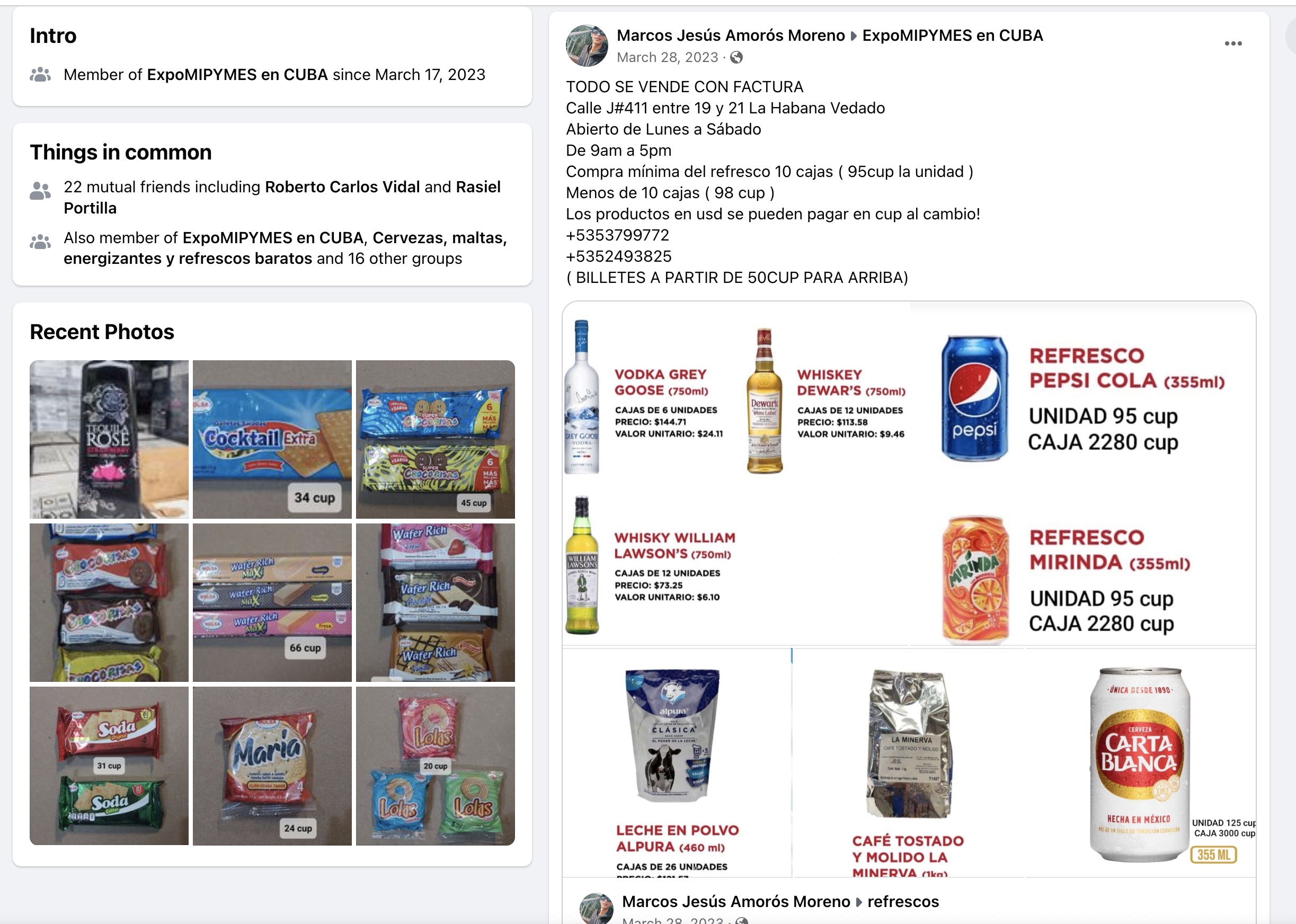 Asimismo, en 2021 el Ministerio de Economía y Planificación de Cuba aprobó una mipyme llamada Dibermex SURL, que también se dedica al mayoreo de bebidas y confituras. Tampoco parece casual que su representante sea Marco Jesús Amorós Moreno, la cara oficial de la marca Sol en Cuba, a quien se mencionó al principio de este reportaje.