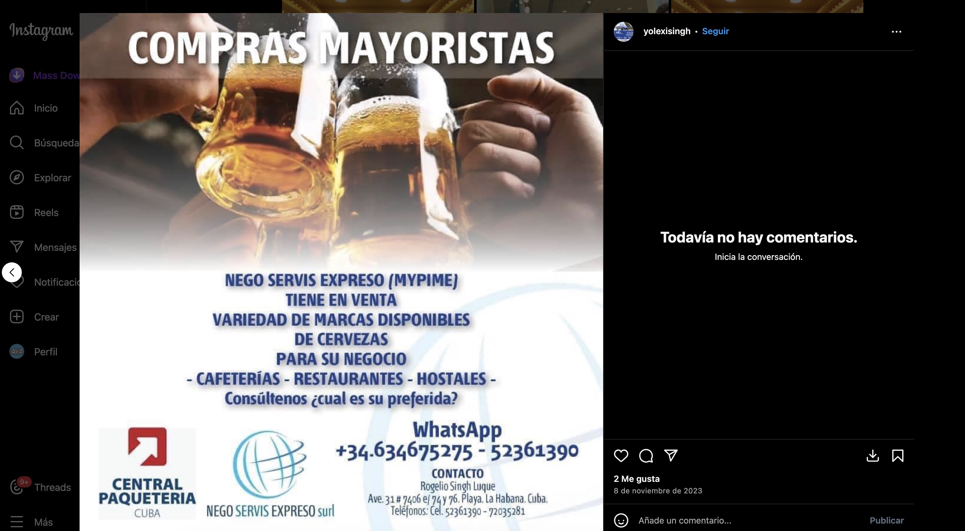 En noviembre de 2023, Yolexi anunció en su cuenta de Instagram que la mipyme cubana Nego Servis Expreso SURL tenía “variedad de cervezas disponibles para su negocio”, enviaba piezas de repuesto para autos, y ofrecía el servicio de compras mayoristas para empresas en Cuba. La mipyme está registrada en la isla por Rogelio Singh Luque, padre de Yolexi y ex coronel de la Seguridad del Estado