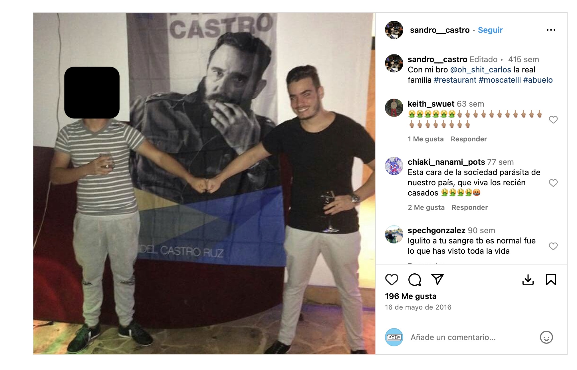 Yaino es, además, pareja actual de Liset Ulloa Díaz, madre de Antonio Tony Castro Ulloa, otro de los nietos de Fidel. Al igual que su padre, Antonio Castro Soto, y su primo, Sandro Castro, Tony, el topmodel de la familia, ha protagonizado escándalos por su estilo de vida ostentoso, que incluye paseos en yates y viajes por Europa.