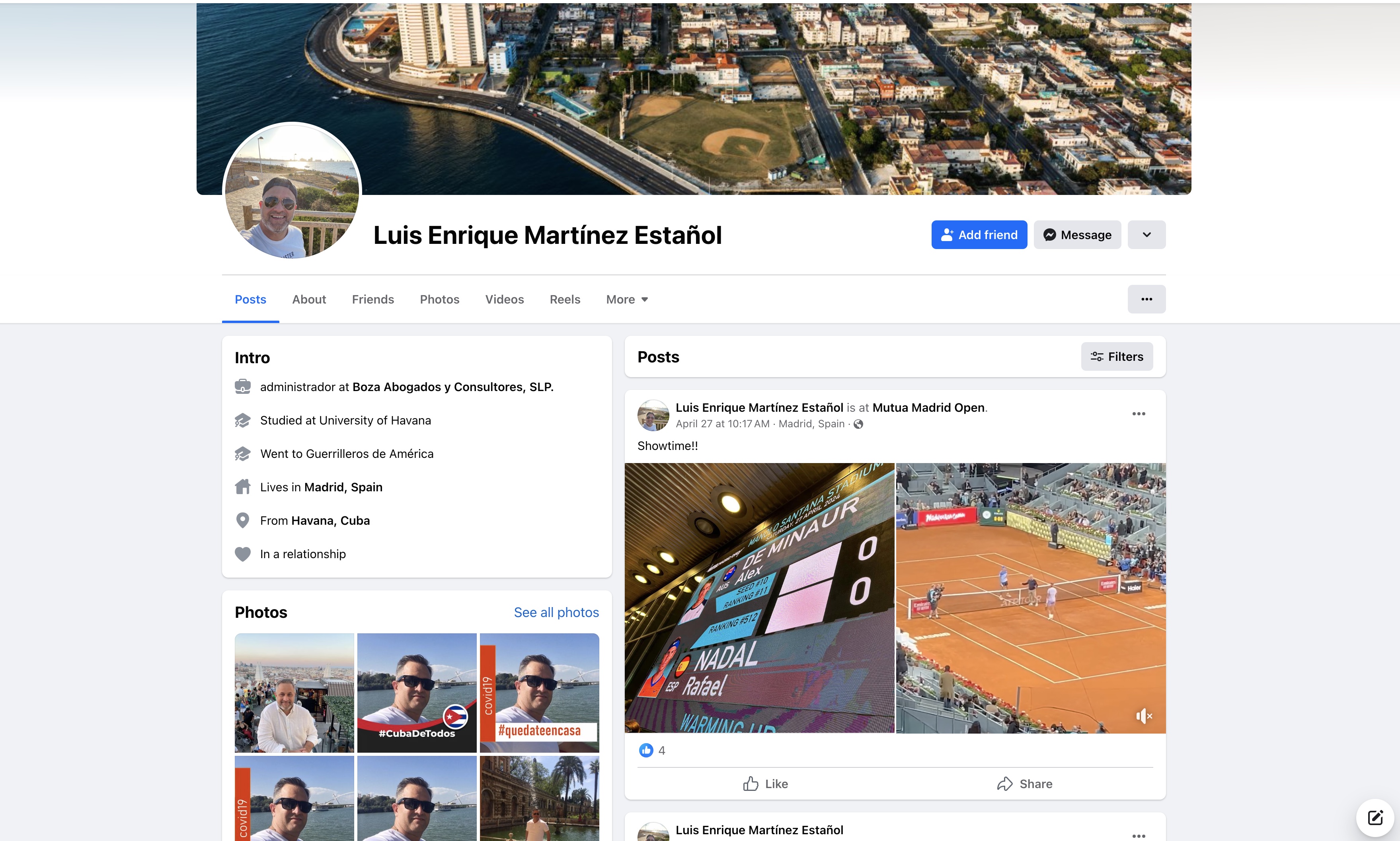 Al otro, Martínez Estañol, se le puede ver en varias fotos de su perfil en Facebook con Castro Santana, el sobrino-nieto de Fidel y Raúl. Según muestran las gráficas, han compartido cenas, aventuras como lanzamientos en paracaídas, y asientos en las primeras filas del estadio Santiago Bernabéu, casa del Real Madrid, en la final de la Supercopa de España de 2017. Martínez Estañol, miembro de la Asociación Profesional Abogados de Extranjería de Madrid (Apaem), se desempeña como apoderado y administrador de unas nueve empresas, incluidas consultoras legales, importadoras y exportadoras.